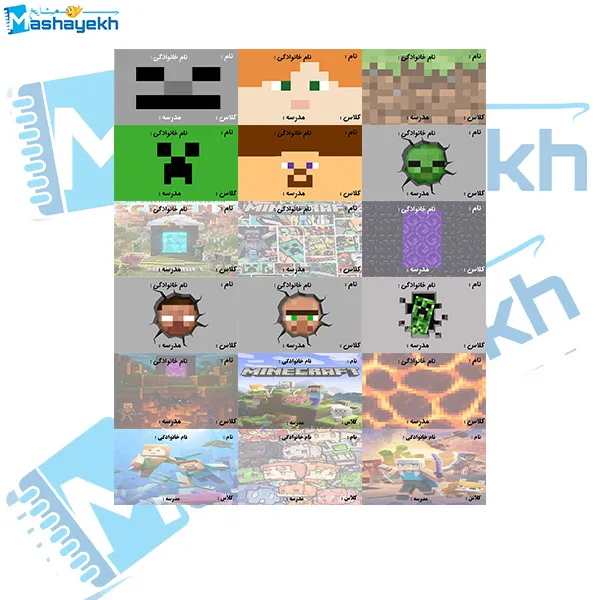برچسب نام و نام خانوادگی مشایخ طرح ماینکرافت (MINECRAFT) کد BR944 بسته 25 عددی