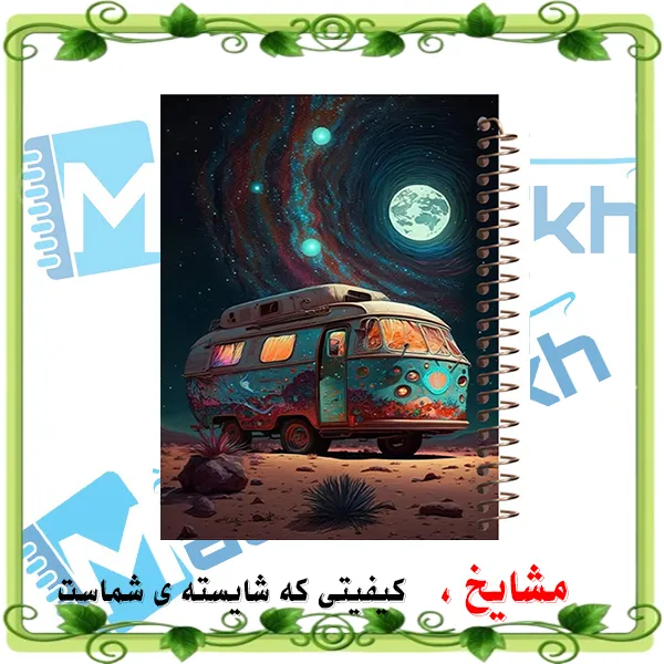 دفترچه یادداشت مشایخ طرح شب زیر نور مهتاب (کد DBR182) با حاشیههای رنگی زیبا و حس آرامشبخش طرح جلدش، یک همراه شیرین برای نوشتن روزمرگیها، جملات قشنگ، برنامهریزی یا حتی خاطرهنویسی کوتاه است.
