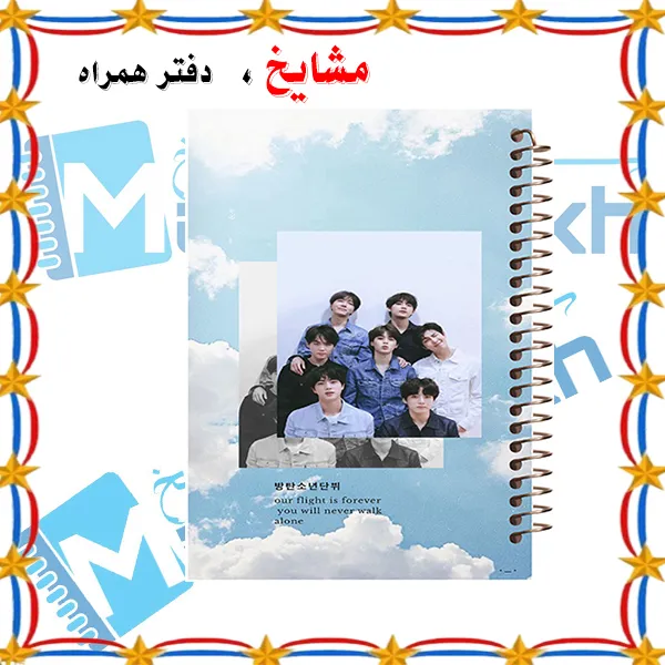 دفتر یادداشت دوخط ۶۰ برگ مشایخ ✨ طرح بی تی اس (BTS) کد DLA466 🎶💜، انتخابی خاص برای طرفداران گروه محبوب کیپاپ و طراحیهای ترندی است.