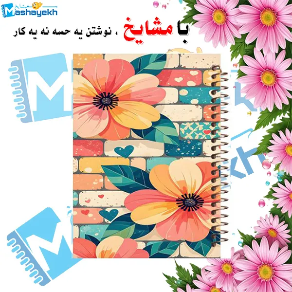 دفتر زبان 60 برگ مشایخ طرح گل های رنگارنگ کد MLA271