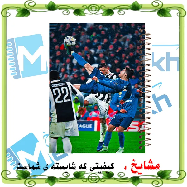 دفترچه لغت ۱۰۰ برگ مشایخ با طرح رونالدو، ابزار مناسبی برای یادگیری و تمرین لغات فارسی و معانی آنهاست. صفحات با کیفیت و طراحی جذاب آن، یادگیری را لذتبخش و مؤثر میکند.دستهبندی دفترهای فوتبالی مشایخ
