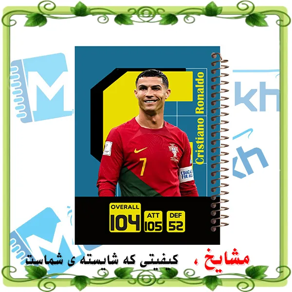 ⚡📓 دفتر مشق 100 برگ مشایخ با طرح جذاب کریستیانو رونالدو مدل توپچی! ⚽ این دفتر انتخابی عالی برای طرفداران ستاره پرتغالی و باشگاه توپچیها است.