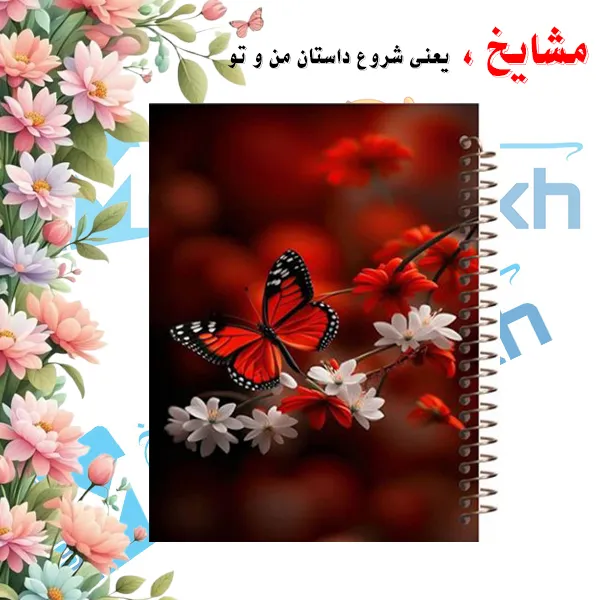 دفتر مشق ۱۰۰ برگ مشایخ ✨ کد YN376 📓 با طرح گل و پروانه 🌸🦋، انتخابی خاص برای کسانی است که عاشق زیبایی و لطافت طبیعت هستند.