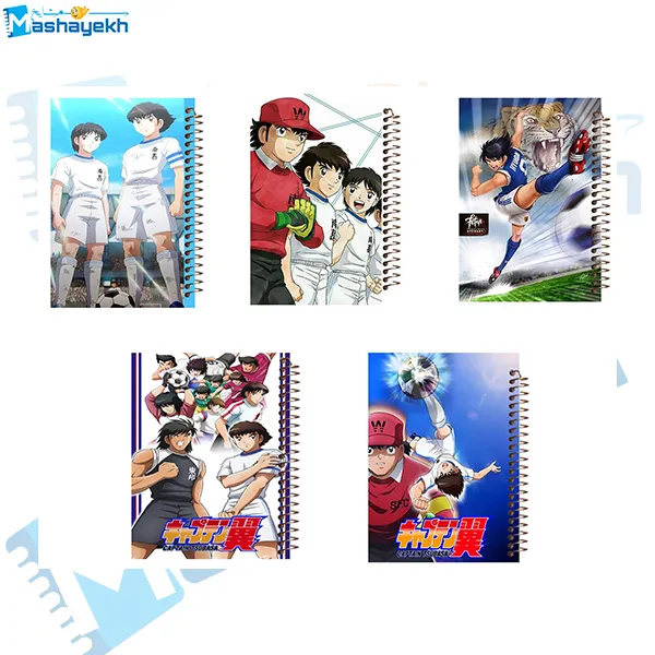 ست دفتر یادداشت دوخط 60 برگ مشایخ طرح کاپیتان سوبا مدل کارتون فوتبالیستها کد SET DLA3001 مجموعه ی 5 عددی